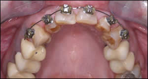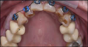 Fig 8: The maxillary anterior teeth were slenderized and orthodontic appliances were inserted.