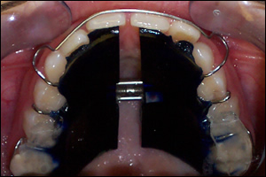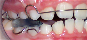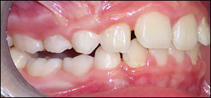 Fig 1: A 9 year old boy presented with a deep overbite and a retruded mandible. An analysis revealed that the deep overbite was retarding the downward and foward growth of the mandible (lower jaw).