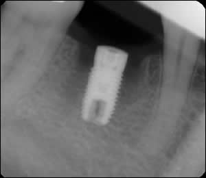 Fig 3: A dental implant was placed in the interseptal bone of the extraction site.