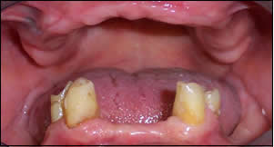 Fig 5: Conventional upper denture and lower overdenture. The lower overdenture clips into place.