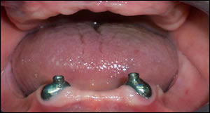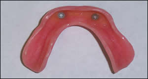 Fig 3: Inside of the lower overdenture revealing two nylon gaskets.